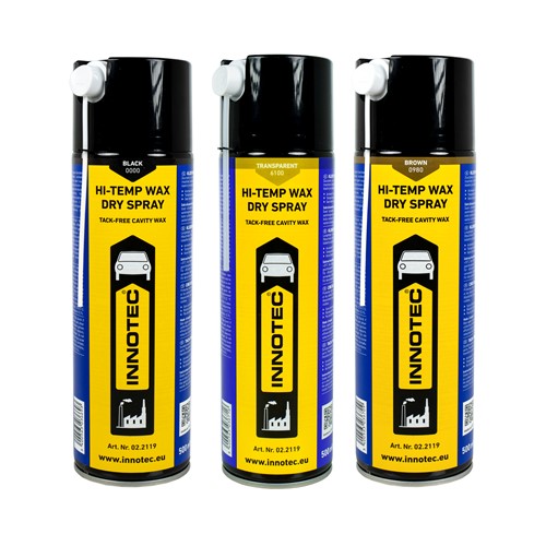 Hi-Temp Wax Dry is a very durable and tack-free wax coating based on microcrystalline waxes that offers excellent rust protection in factory original quality for sheet metal parts, cavities and (machine) parts. It has an excellent penetration and water-repellent power which enables it to penetrate into the smallest gaps and thus reliably protect the surface for a long time. Thanks to the addition of a UV indicator, the presence of Hi-Temp Wax Dry can always be checked.